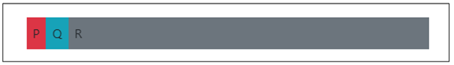 <div class="d-flex mb-3"> <div class="p-2 bg-danger">P</div> <div class="p-2 bg-info">Q</div> <div class="p-2 flex-grow-1 bg-secondary">R</div> </div>