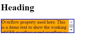 <div>Overflow property used here. This is a demo text to show the working of CSS overflow-x and overflow-y.</div>