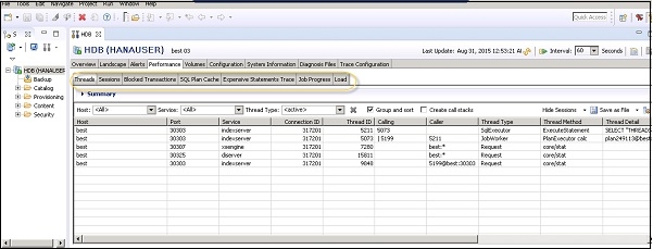 可以在 SAP HANA 中“管理”图标下的“性能”选项卡中查看此内容。