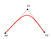 二次贝塞尔曲线是 2nd 次的贝塞尔曲线,由三个点 (A0、A1 和 A2) 定义。