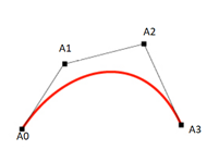 三次贝塞尔曲线是 3rd 次的贝塞尔曲线,由四个点 (A0、A1、A2 和 A4) 定义。曲线从 A0 开始,在 A3 结束。