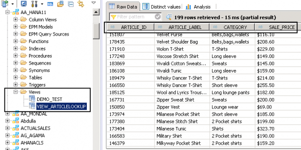 create view view_Articlelookup as select ARTICLE_ID,ARTICLE_LABEL,CATEGORY,SALE_PRICE from "AA_HANA11"."ARTICLE_LOOKUP";