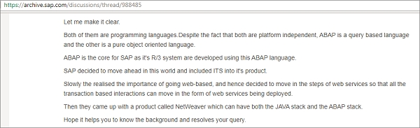 您还可以参考下面的线程,比较 NetWeaver 中的 ABAP 和 Java 栈