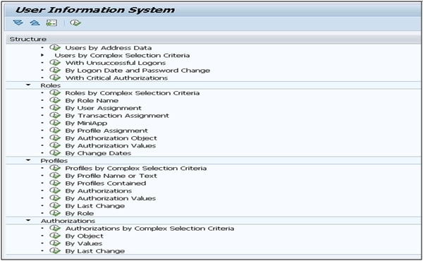 下面显示的 SUIM 事务将打开用户信息系统,如下所示