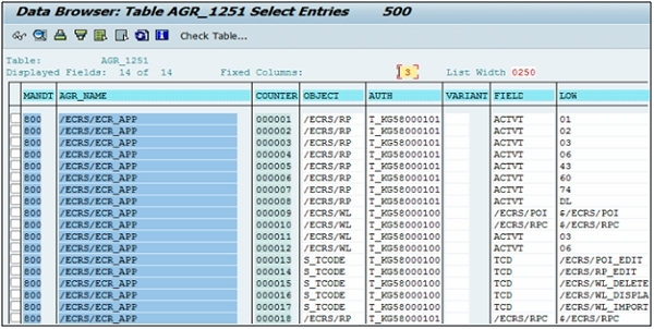 AGR_1251 是一个用来存储活动组信息授权数据的标准 SAP 表格。该表格在 R/3 SAP 系统中可用,具体依据版本和发行级别而定。