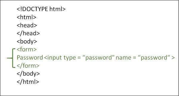在 HTML 中获取密码输入,要使用 <input> 标签,将其 type 属性指定为 password。这会隐藏密码集中的字符。这也是单行文本输入。