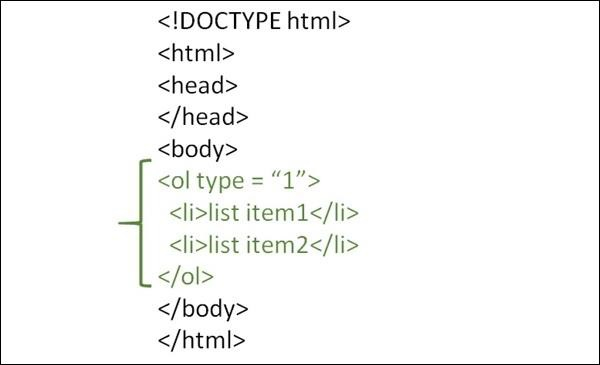 <!DOCTYPE html> <html> <head> <meta charset="UTF-8"> <meta http-equiv="X-UA-Compatible" content="IE=edge"> <meta name="viewport" content="width=device-width, initial-scale=1.0"> </head> <body> <ol type="a"> <li>Mango</li> <li>Guava</li> <li>Apple</li> <li>Banana</li> </ol> <ol type="I"> <li>c</li> <li>c++</li> <li>Java</li> <li>Python</li> </ol> <ol type="i"> <li>c</li> <li>c++</li> <li>Java</li> <li>Python</li> </ol> </body> </html>