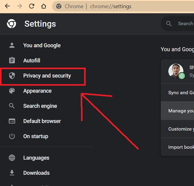 步骤 3− 设置页面打开后,您需要点击隐私和安全,如下所示。