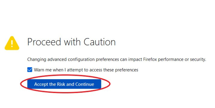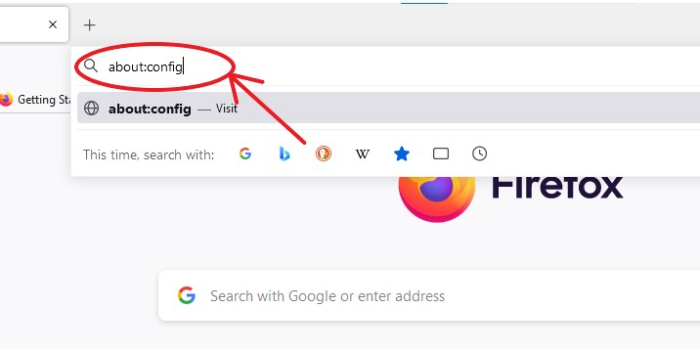步骤 1 − 在 Firefox 中,在地址栏中输入 about:config 并按回车键。