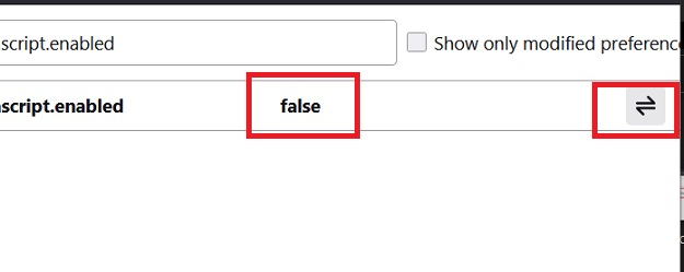 步骤 4 − 要将 javascript.enabled 设置为 false,请单击屏幕最右侧的切换按钮。