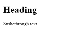 <!DOCTYPE html> <html> <head> <title>HTML Strikethrough text</title> </head> <body> <h1>Heading</h1> <p style="text-decoration: line-through;"> Strikethrough text </p> </body> </html>