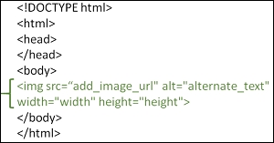 要在网页上使用图像,请使用 <img> 标签。该标签允许您添加图像源、替代文本、宽度、高度等。src 属性用于添加图像 URL。alt 属性是替代文本属性,当图像加载失败时显示的文本。使用 HTML,可以将图像源添加为另一个域的 URL。为此,请将 src 属性设置为指向另一个域的链接。