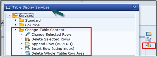 你可以在 Table 工具/Table 显示服务中找到插入一行到表内或更改表内容的选项