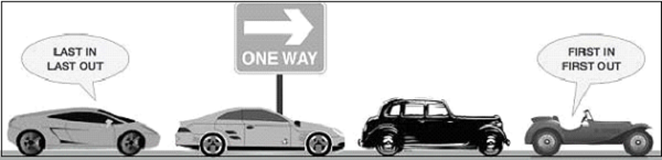队列的现实示例可以是单车道单行道,其中车辆先进入,先退出。