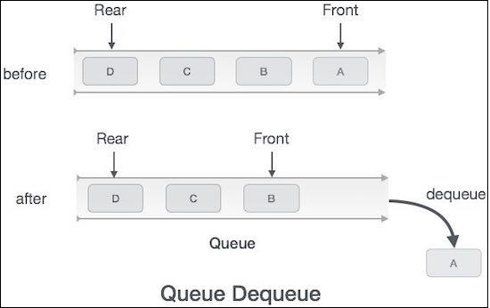 从 PriorityQueue 中出列元素意味着删除优先级最高的元素。我们在数组的末尾存储优先级最高的元素,我们可以简单地弹出来进行出列操作。