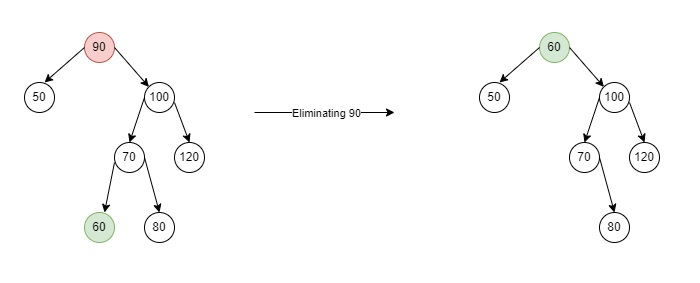 从树中删除节点这个术语基本上是一个过程,在这个过程中,一个节点被删除并形成一个新的形状。但在某些其他情况下,它会消除它们之间的链接,并替换为树中的其他节点。
