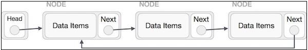 在单链表中,最后一个节点的下一个指针指向第一个节点。