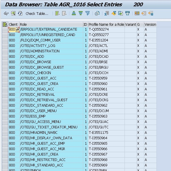 现在让我们跳转到 AGR_1016,它包含单个角色的不同条目。这意味着它可以为一个角色拥有多个条目。因此,如果我们谈论这两个表中的行数,很明显后者的条目比前者多。