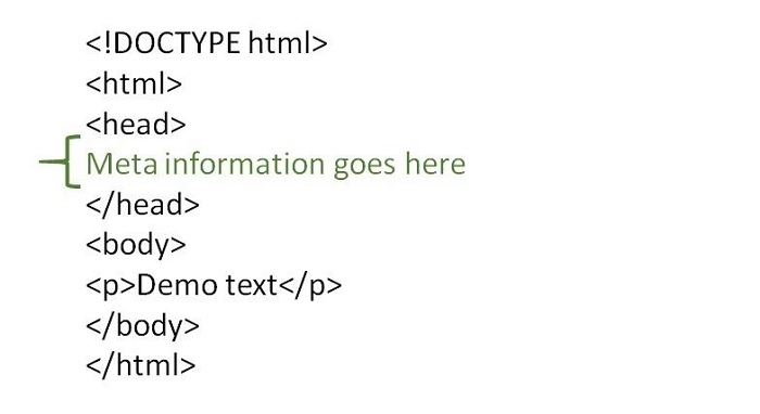<!DOCTYPE html> <html> <head> <meta name="description" content="meta tag in HTML"> <meta name="author" content="lokesh"> </head> <body> <p>In this example we have added two meta tags. For</p> <ol> <li>description</li> <li>author name</li> </ol> <p>Meta tag contents are not visible on your browser. They are just added to give additional information about the HTML document. The mata tag is added inside the head tag</p> </body> </html>