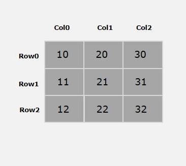 2D 数组− 在 Java 中,二维数组表示为同一类型的一维数组的数组。通常,它用于表示具有行和列的值表 −