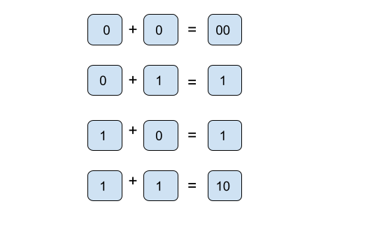 二进制数加法有一些规则。如果我们遵循这些规则,那么加法运算将比十进制加法更容易。二进制数加法的规则如下: