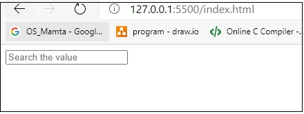 当您单击搜索框时,将显示占位符值。快照如下 −