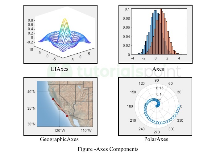 因此,所有这些都是MATLAB应用程序构建器中的常用组件。现在,让我们了解MATLAB应用程序构建器中的坐标轴。