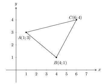 答案:已知坐标为A (-3,-1) B (2,-1)和C (2,3)。