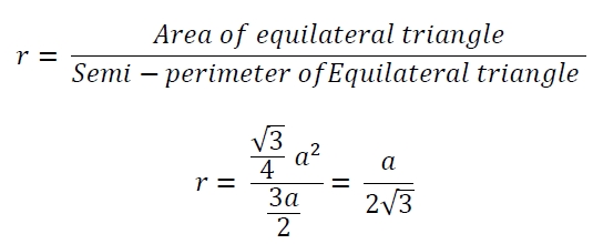 在这里,我们将看到内接于等边三角形的圆的面积。三角形的边长为“a”。