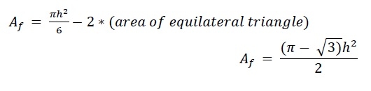 float area = ((3.1415 - sqrt(3)) * h * h)/2;