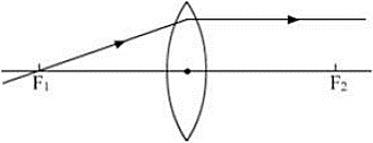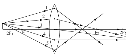 (b) 2、3 和 4 解释光线 (2)、(3) 和 (4) 遵循折射定律。平行于主轴的光线通过透镜的第二个焦点 (F2)。通过光心的光线不发生偏转。通过透镜的第一个焦点 (F1) 的光线平行于主轴。