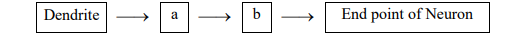 (a) 味觉感受器(Gustatory receptor)的主要功能是味觉。因此,在人类中,舌头是味觉感受器,因为咸、酸、甜的味道都是借助舌头来感知的。嗅觉感受器(Olfactory receptor)的主要功能是嗅觉,人类鼻子可以检测各种气味。(b) 在给定的神经元流程图中,信息以电脉冲的形式传递: 树突 ---> 细胞体 ---> 轴突 ---> 神经元终点。