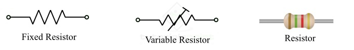 在电流路径中引入电阻或阻力的电路元件称为电阻器。它阻碍电流流动的特性称为**电阻**。电阻器的电阻用符号R表示,单位为**欧姆 ($\mathrm{\Omega}$) **。下图显示了电阻器的典型电路符号。