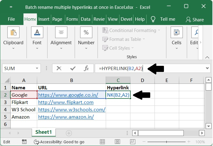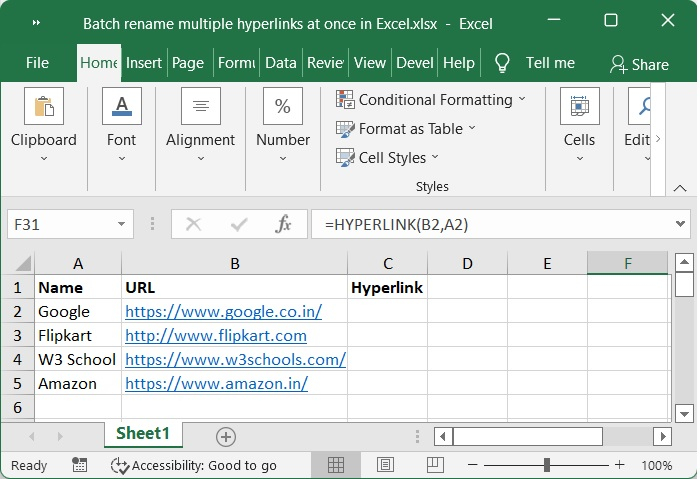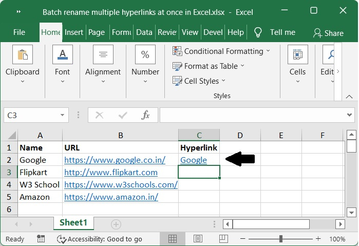 在本教程中,我们详细解释了如何在 Excel 中一次批量重命名多个超链接。