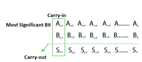 因此,MSB 处的进位输入和进位输出足以检测溢出。