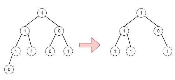 假设我们有两个二叉树的头节点 root,其中每个节点的值是 0 或 1。我们必须找到同一棵树,其中所有不包含 1 的子树已被删除。所以如果这棵树像 -