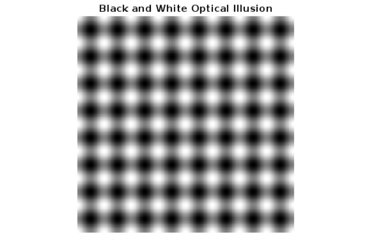 然后,我们指定一个公式来生成黑白视错觉图案,并将结果存储在“illusion_pattern”变量中。然后,我们规范化图案的值,以确保它们在 [0, 1] 范围内;