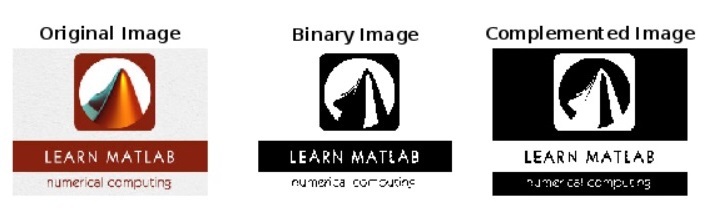 在这个 MATLAB 程序中,我们首先使用“imread”函数读取输入图像。然后,我们使用“im2bw”函数将输入图像转换为二值图像。接下来,我们使用“imcomplement”函数创建二值图像的补图像。最后,我们使用“imshow”函数显示原始图像、二值图像和补图像,并附带相应的标题。