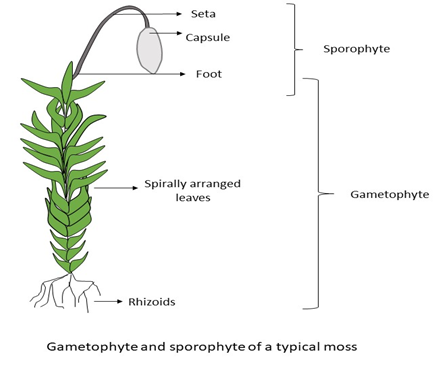 与所有其他植物一样,苔藓植物的有性生活史表现出世代交替现象,其中植物体在产生配子的配子体世代(单倍体)和通过减数分裂产生孢子的孢子体世代(二倍体)之间交替。