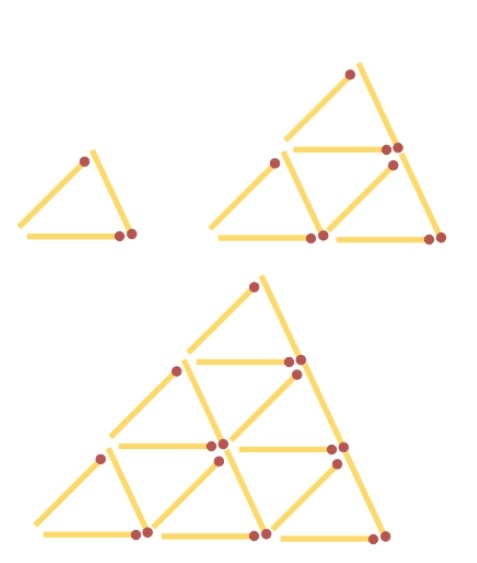 在本文,我们将了解如何计算制作以下金字塔形状所需火柴的数量。金字塔的底座已知。如果底座是 1,那么制作金字塔需要 3 根火柴;底座为 2,需要 9 根火柴;底座为 3,需要 18 根火柴。