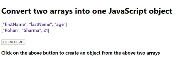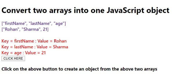 <h3>Click on the above button to create an object from the above two arrays</h3>