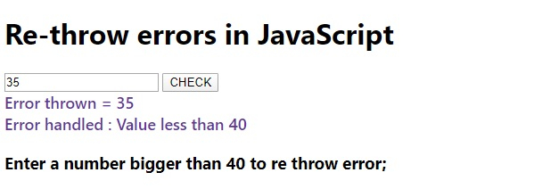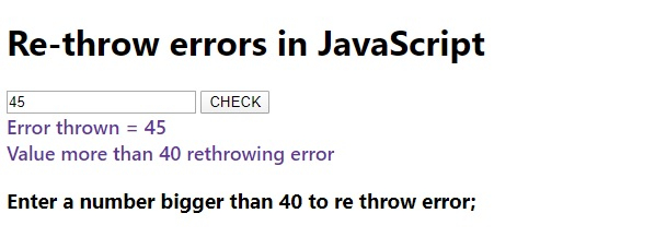 resEle.innerHTML += "Value more than 40 rethrowing error";