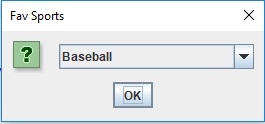JOptionPane.showMessageDialog(null, comboBox, "Fav Sports",
