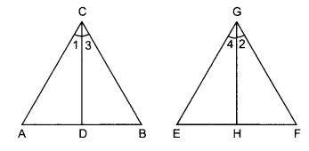CD 和 GH 分别是∠ACB 和∠EGF 的角平分线,使得 D 和 H 分别位于△ABC 和△EFG 的边 AB 和 FE 上。