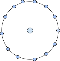 第三个中心十三边形数表示为中心的一个点,周围环绕着一个十三边形,以及一个连续的十三边形层。