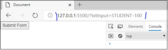 点击“提交表单”按钮,您将获得查询字符串中更改的值。这将生成以下输出 −