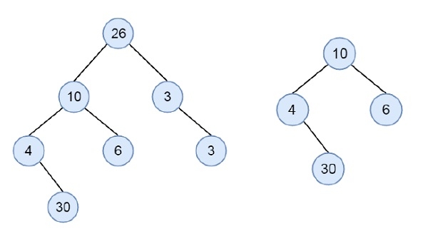 假设我们有两个二叉树。我们必须检查较小的树是否为另一棵二叉树的子树。考虑给定的这棵二叉树。