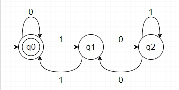 方法很简单:如果一个数字可以被 3 整除,则余数为 0;否则,余数为 1 或 2。这三个余数对应三个状态。初始状态也是最终状态,因为当余数为 0 时,表示该数字可以被整除。