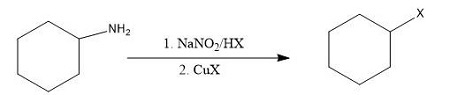 这种反应通常在芳基重氮盐合成芳基或烷基卤化物时观察到。它可以用作在实时创建重氮盐而不是芳香氨基的替代方法。
