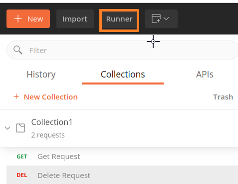 步骤1 - 点击Postman中的运行器菜单。